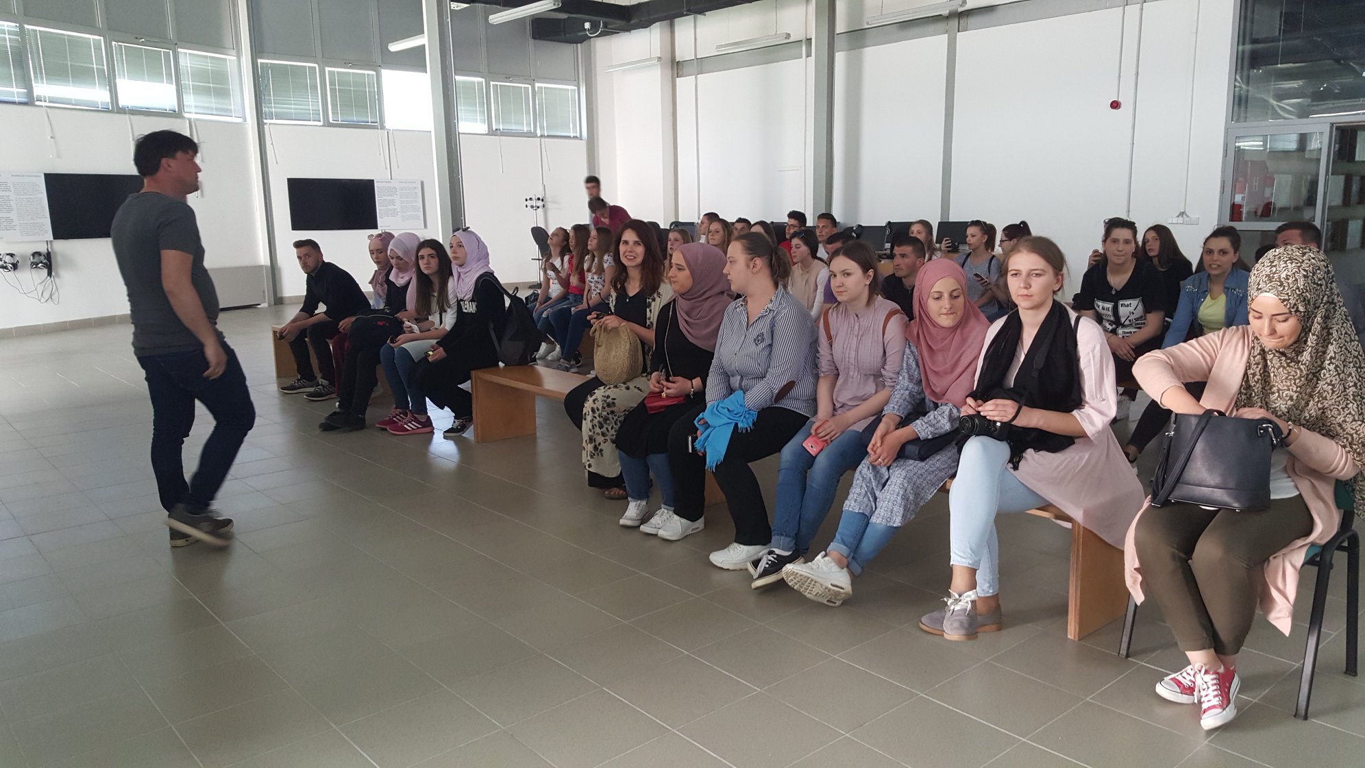 Nakon što smo stigli u Potočare, posjetili smo muzej u sklopu Memorijalnog centra, gdje smo pogledali dokumentarni film o počinjenom genocidu nad Bošnjacima, a potom i Spomen sobu. Na samom kraju smo posjetili i mezarje, gdje smo proučili fatihu šehidima.