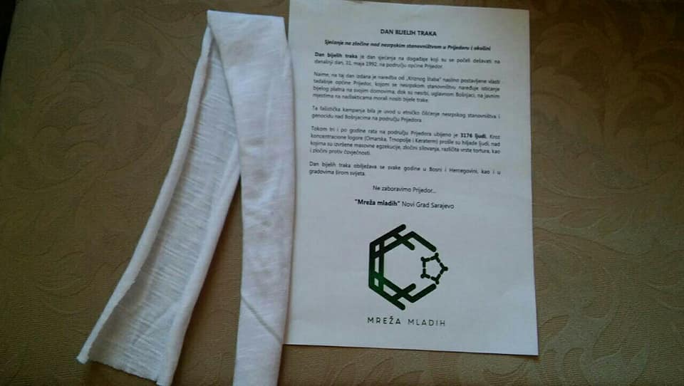 U sklopu svojih aktivnosti i programa obilježavanja značajnih datuma Mreža mladih Novi Grad organizirala je podjelu letaka i bijelih traka u povodu Dana bijelih traka,kako bi oživjeli sjećanje na događaje koji su se odigrali u Prijedoru 1992.godine.